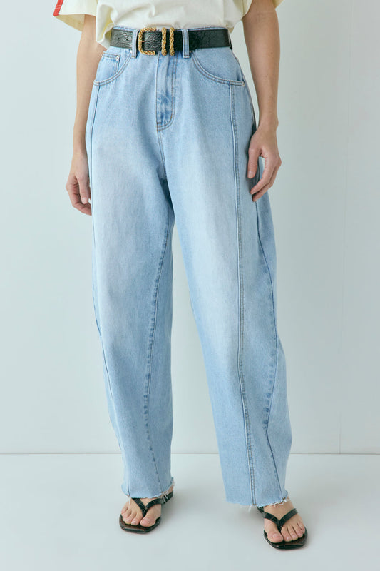 Nyra Barrel Denim Jeans Light Blue