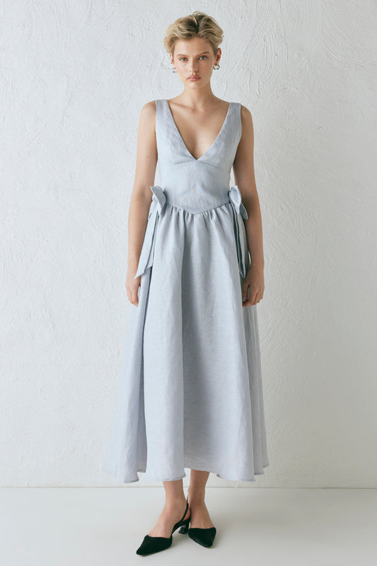 SAVE 70%Paros Palms Linen Midi Dress Sea
