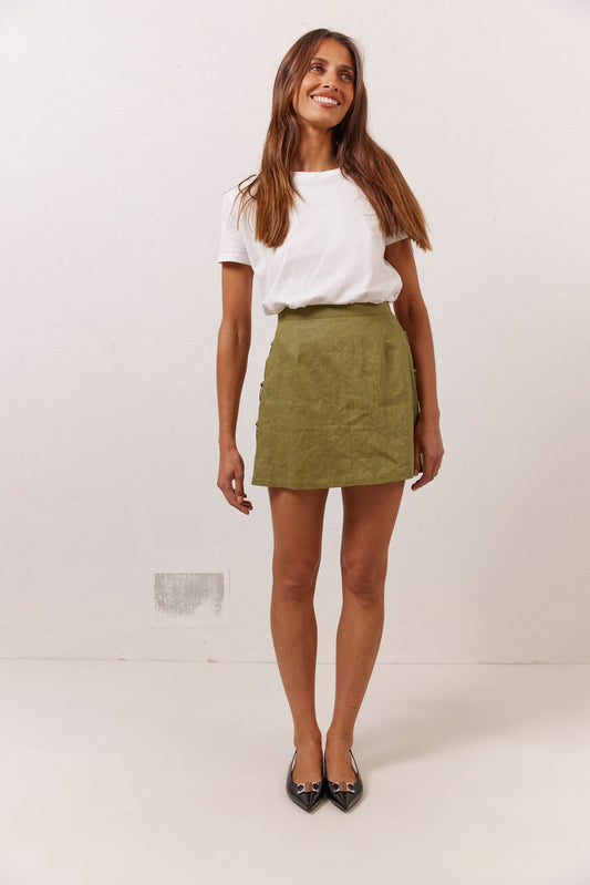SAVE 30%Discoteca Linen Mini Skirt Olive