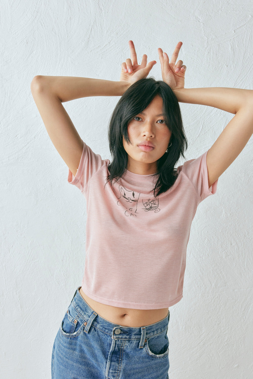 The Dion Tee features a hand-drawn Cool Cat in-house print exclusive to VRG GRL, created by Dion. This tee is a soft stretch fabric. Designed in Australia.
