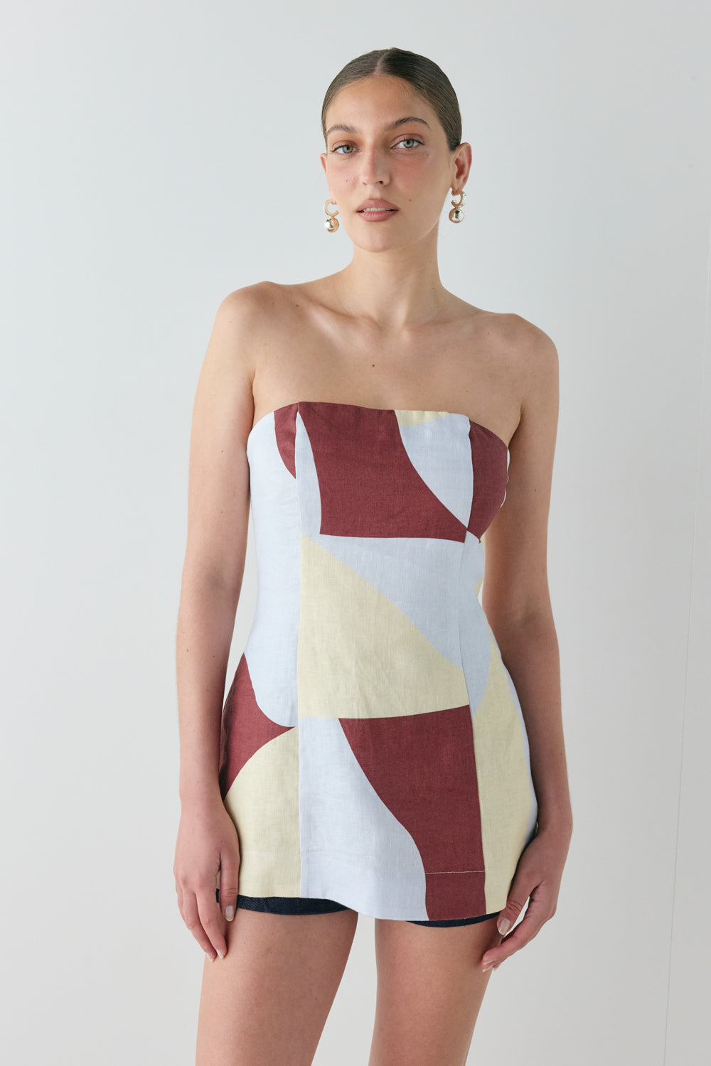 Strapless with gel tape support and an adjustable tie-up back - the linen top in our exclusive Muna print made to stay put and stand out. Fully lined. Shop now.