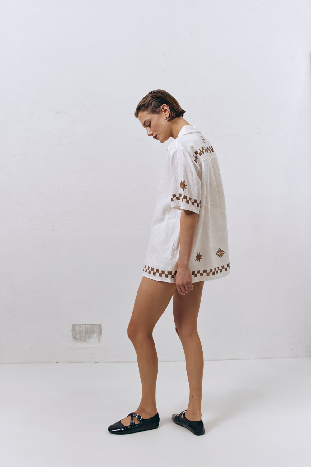 Inspired by our travels along the winding roads of the Amalfi coast... Our best selling Mediterranean Blue Linen Shirt is now available in Brown! This lightweight linen number is a relaxed fit & features an exclusive print hand painted by our VRG GRL designers, we're obsessed!