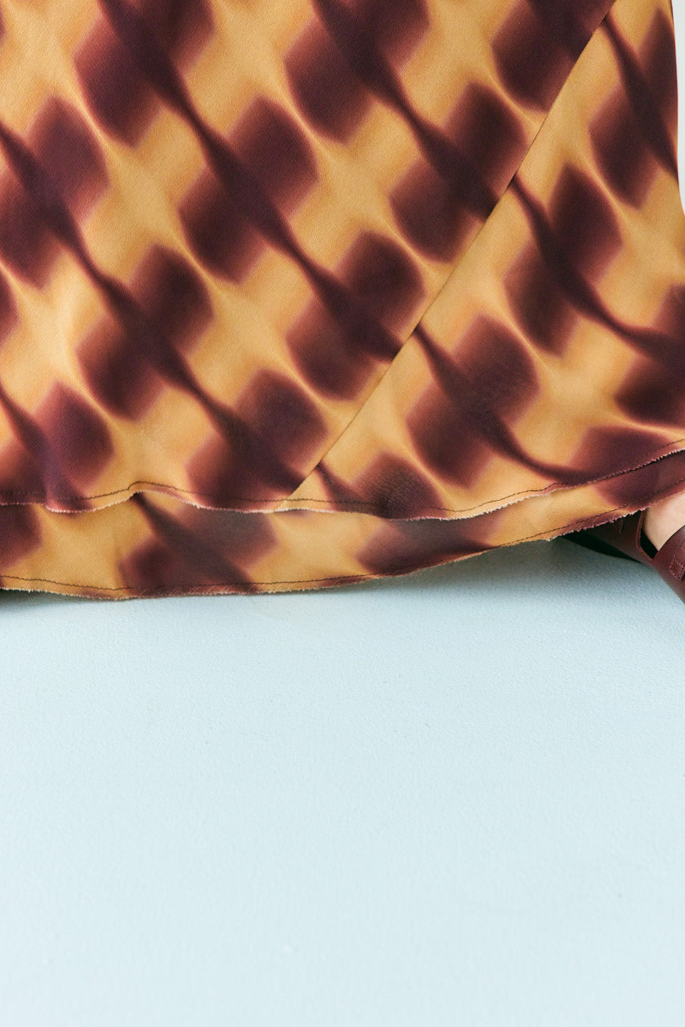 The Nelle Maxi Dress in Aro created in an exclusive in-house print. Featuring a scoop neck and bias cut. Fully lined with a raw cut hem finish. Designed in Australia.