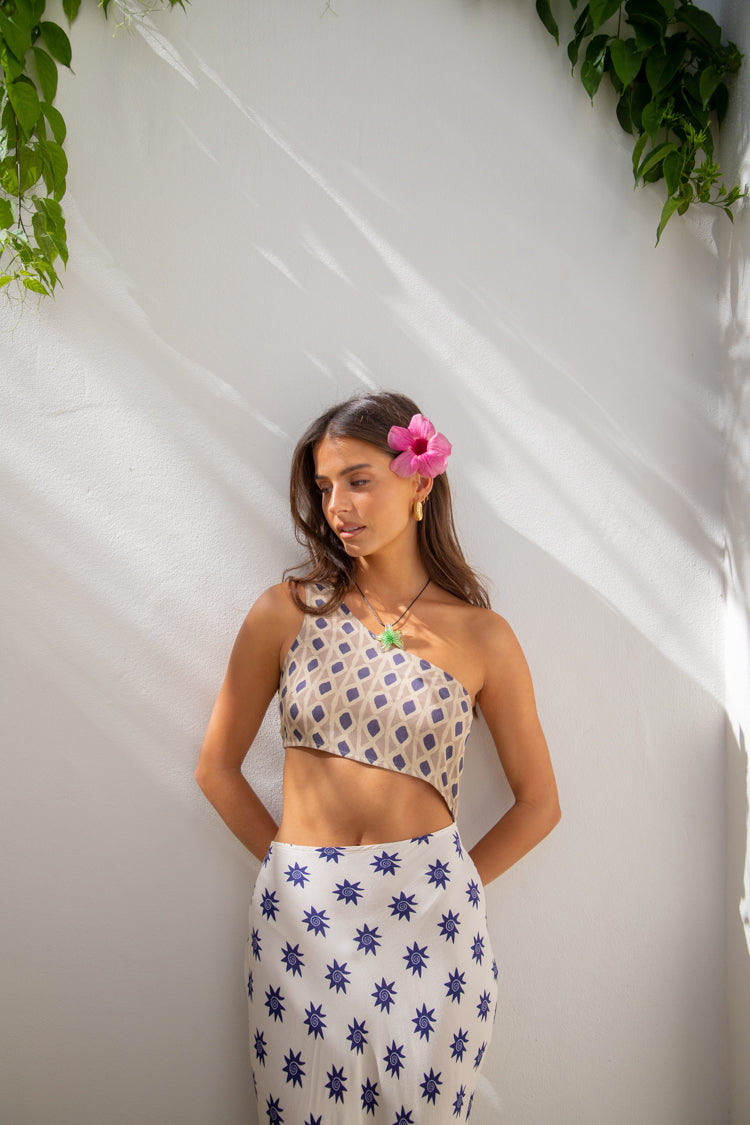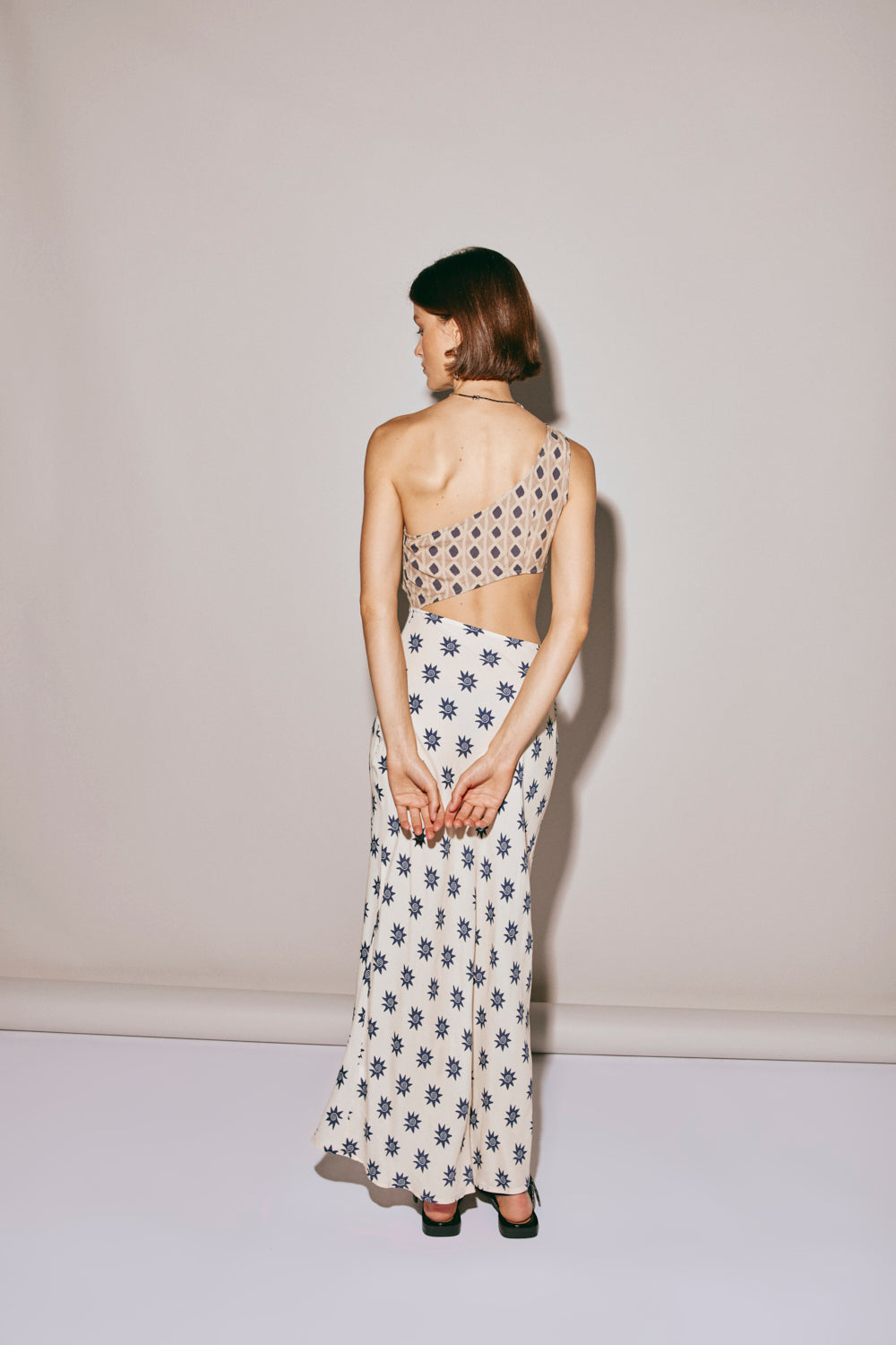 Dreaming of sun-kissed days blending into endless summer nights... This maxi number is the most amazing fit as it's cut on the bias and falls in all the right places. We love the asymmetrical cut-out design of this dress & the perfect blend of prints, which were exclusively designed by our in-house designers.