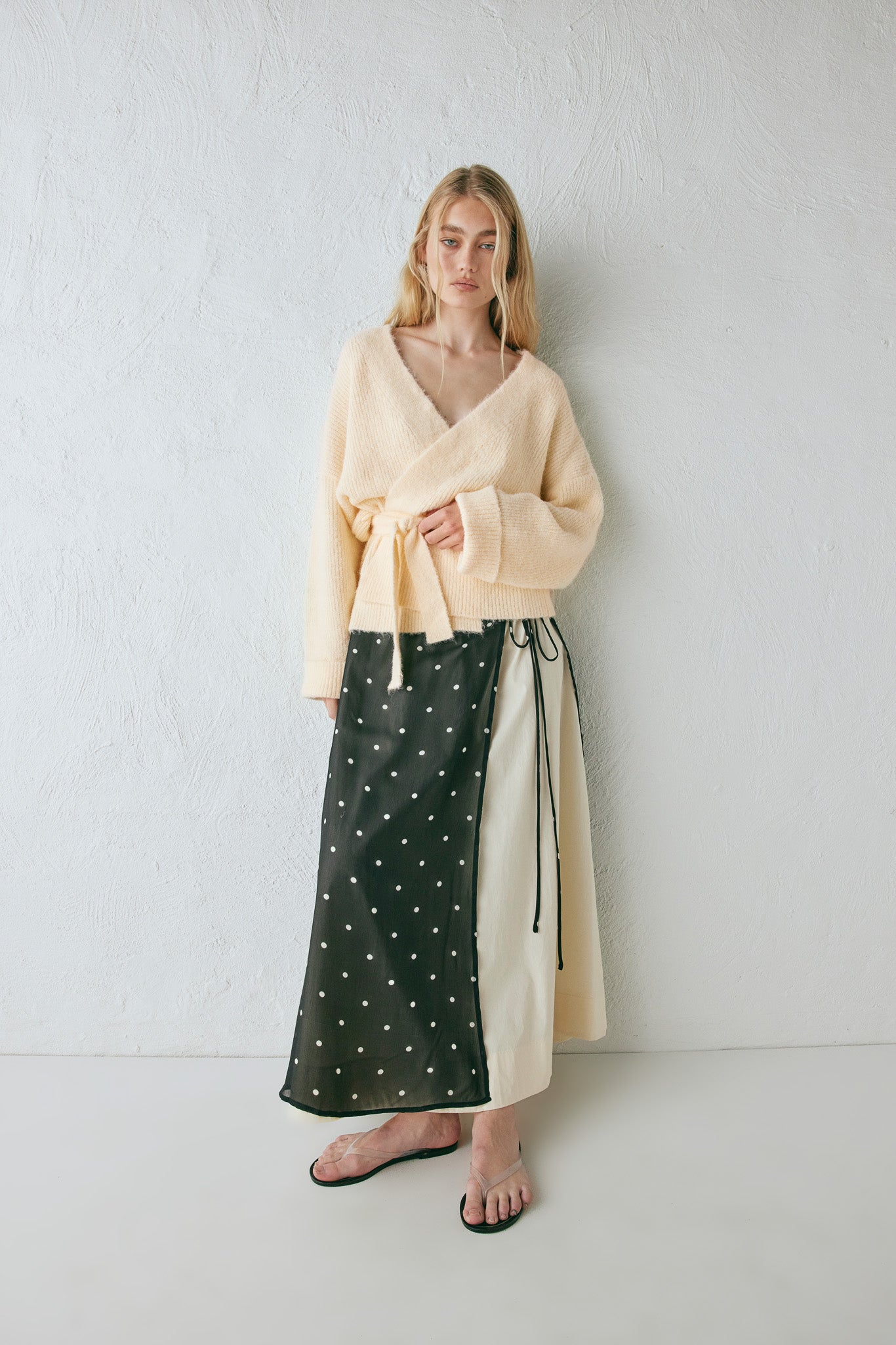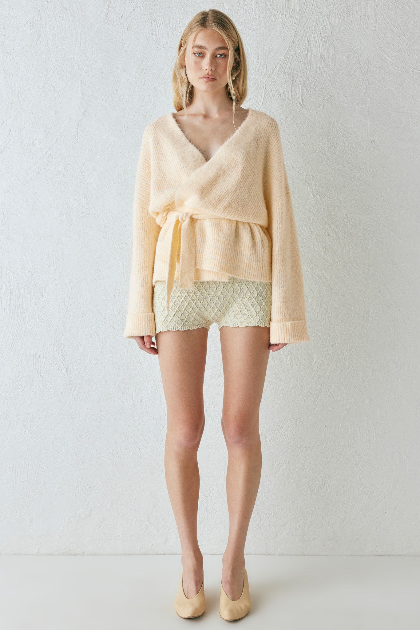 The Samira Knit Cardigan in Cream. Made from a wool blend stretch knit featuring a waist tie. Designed in Australia.