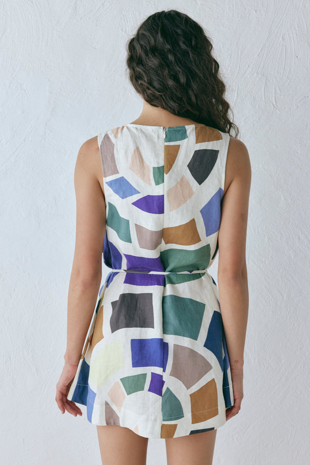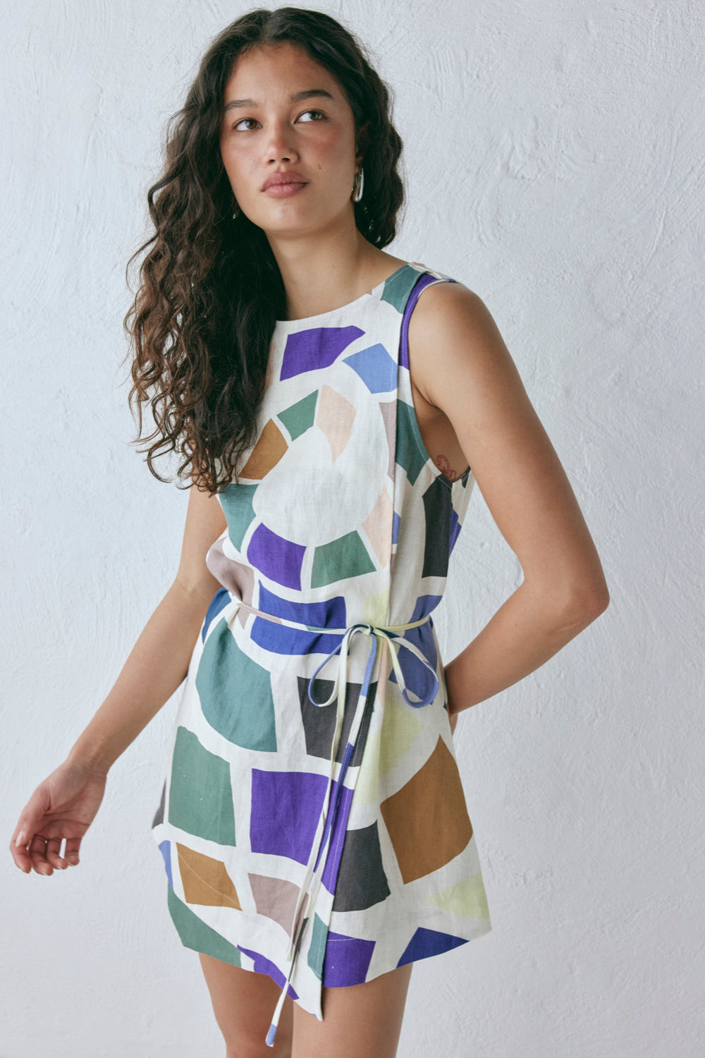The Scarlet Wrap Mini Dress Lei is made in 100% Linen. Featuring an exclusive in-house print, A-line shape and waist tie. Designed in Australia.