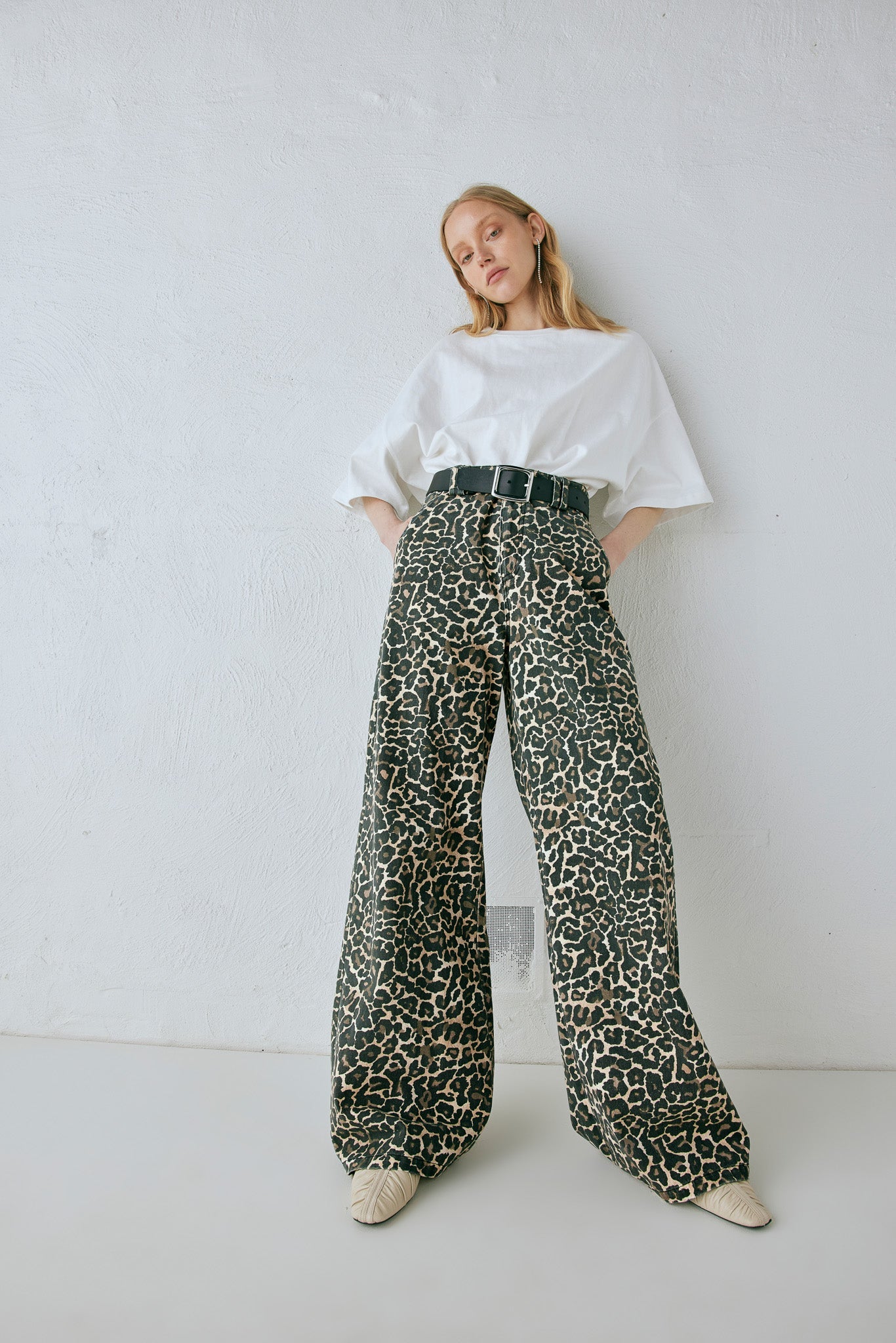 Zia Denim Jeans showcase an exclusive in-house leopard print, made on 100% Cotton. Features centre front button & zip, belt loops & pockets. Designed in Australia.